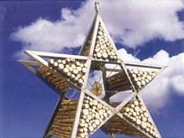 Two steel five pointed stars (pentagrams) of the same size are placed